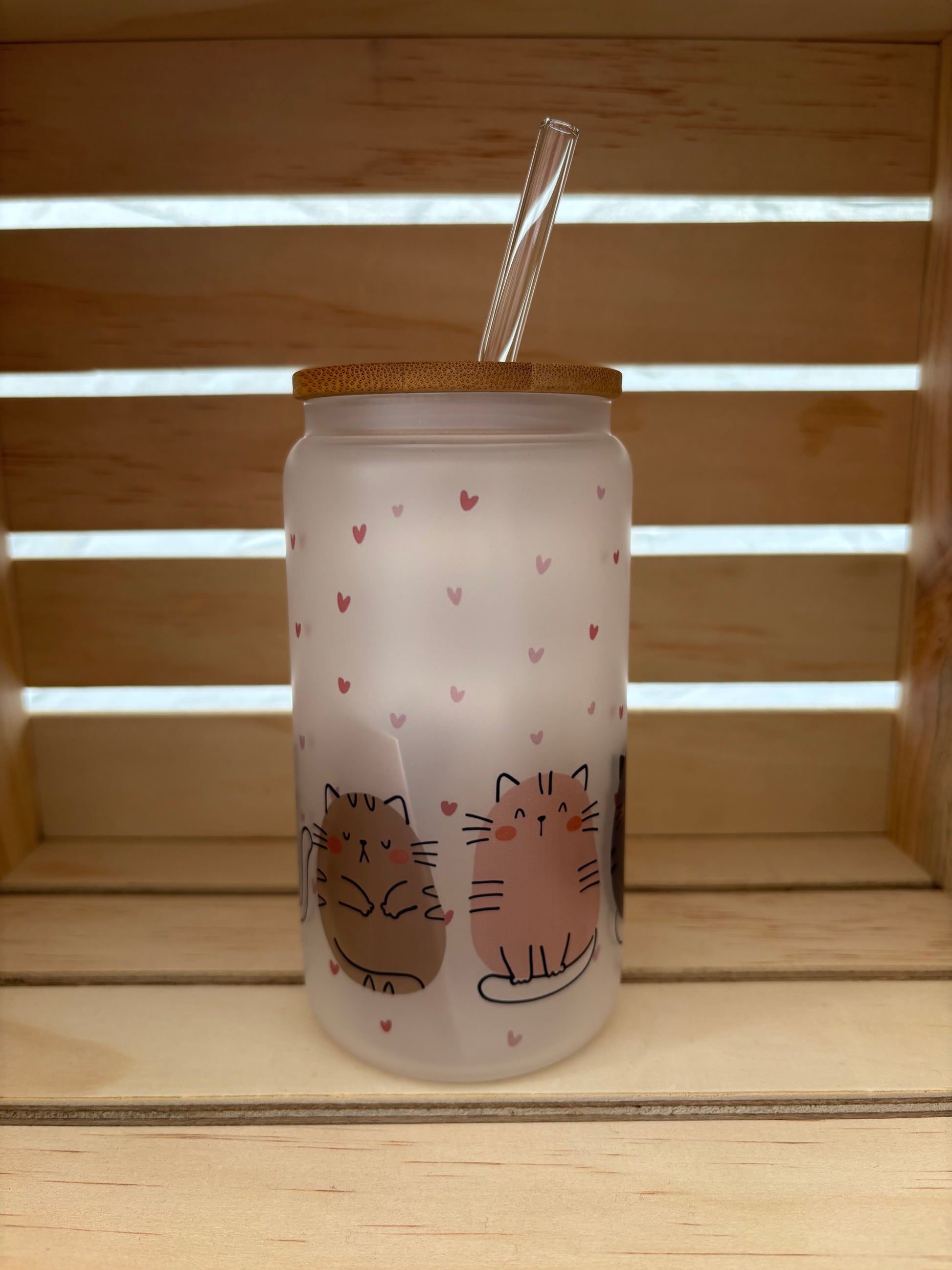 Sip in style with our Cat Potatoes Frosted Glass — the cutest companion for your favourite iced coffee, tea, or any refreshing drink. This 16 oz frosted glass features a group of lounging “cat potatoes,” each full of personality, with tiny hearts wrapped around the design for an extra sweet touch. Complete with a bamboo lid and reusable glass straw, it’s equal parts playful and practical.