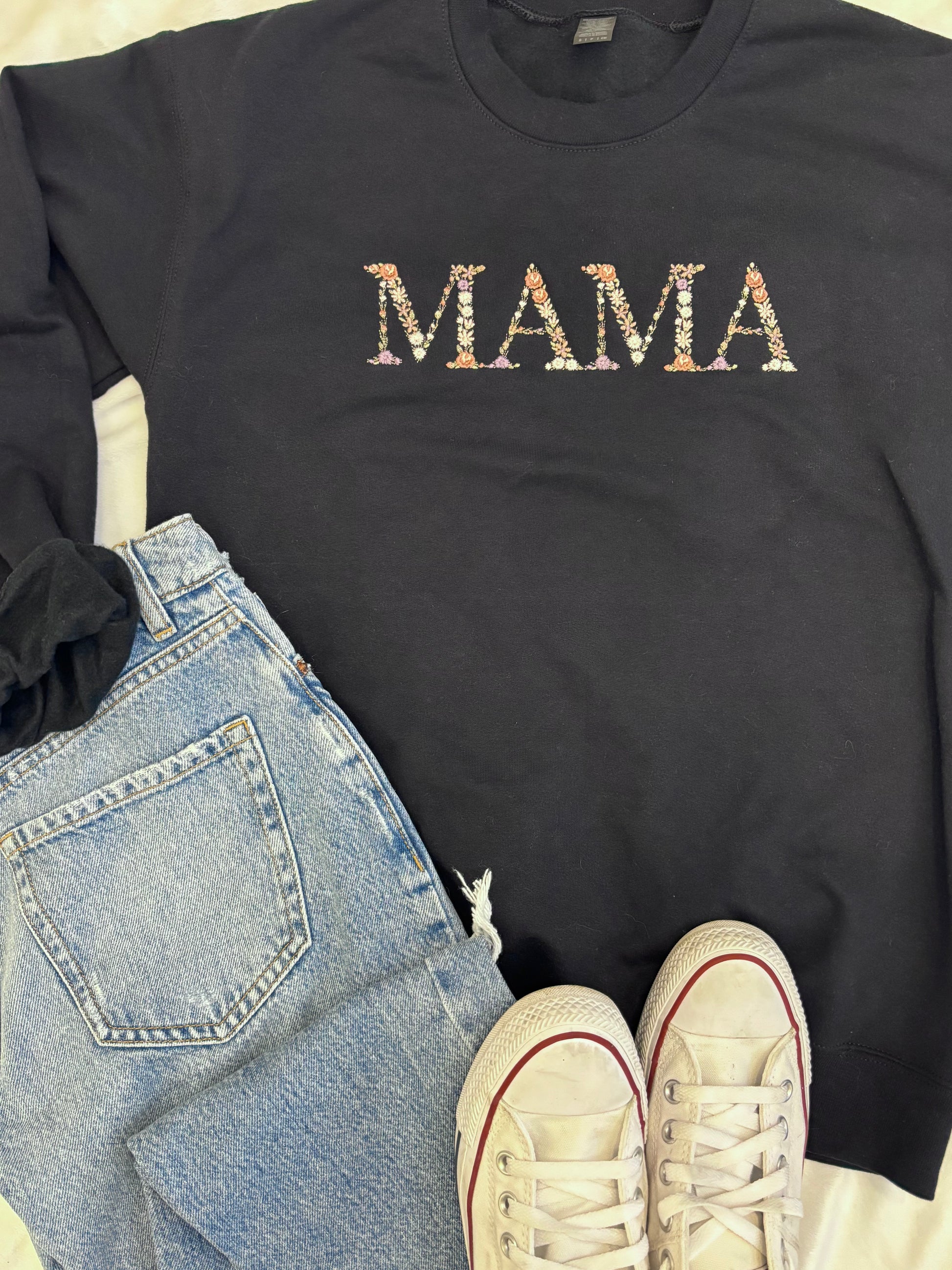 Celebrate motherhood in style with our beautifully embroidered Mama sweatshirt, featuring delicate floral lettering for a timeless and elegant look. Made with high-quality, cozy fabric, this piece is perfect for everyday wear or as a thoughtful gift for the special mama in your life.