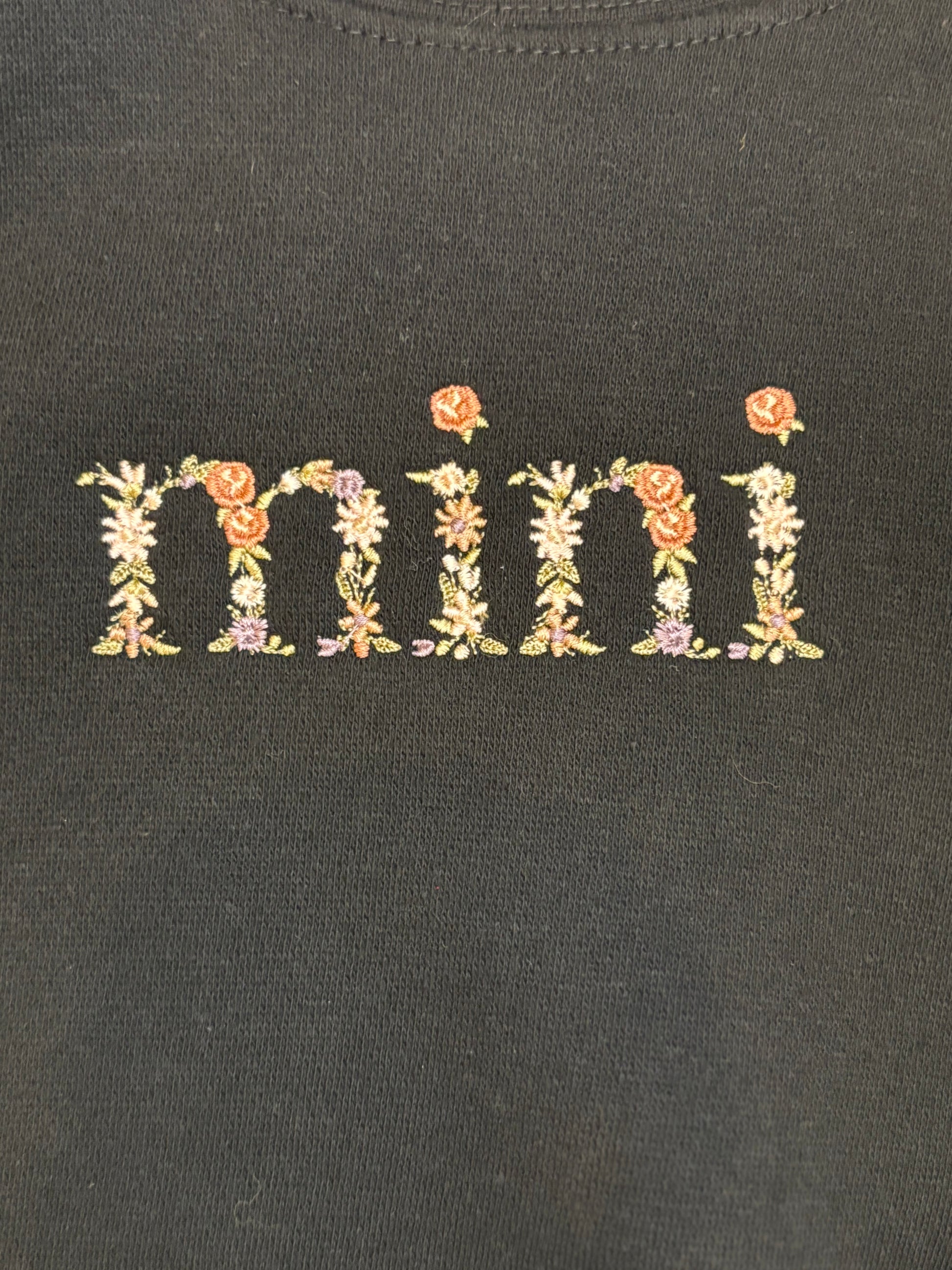 The perfect match for our Mama sweatshirt, this adorable Mini crewneck is embroidered with delicate floral lettering, making it a sweet and stylish choice for little ones. Whether you're twinning with Mom or just rocking a cozy look, this sweatshirt is soft, comfortable, and made to last.