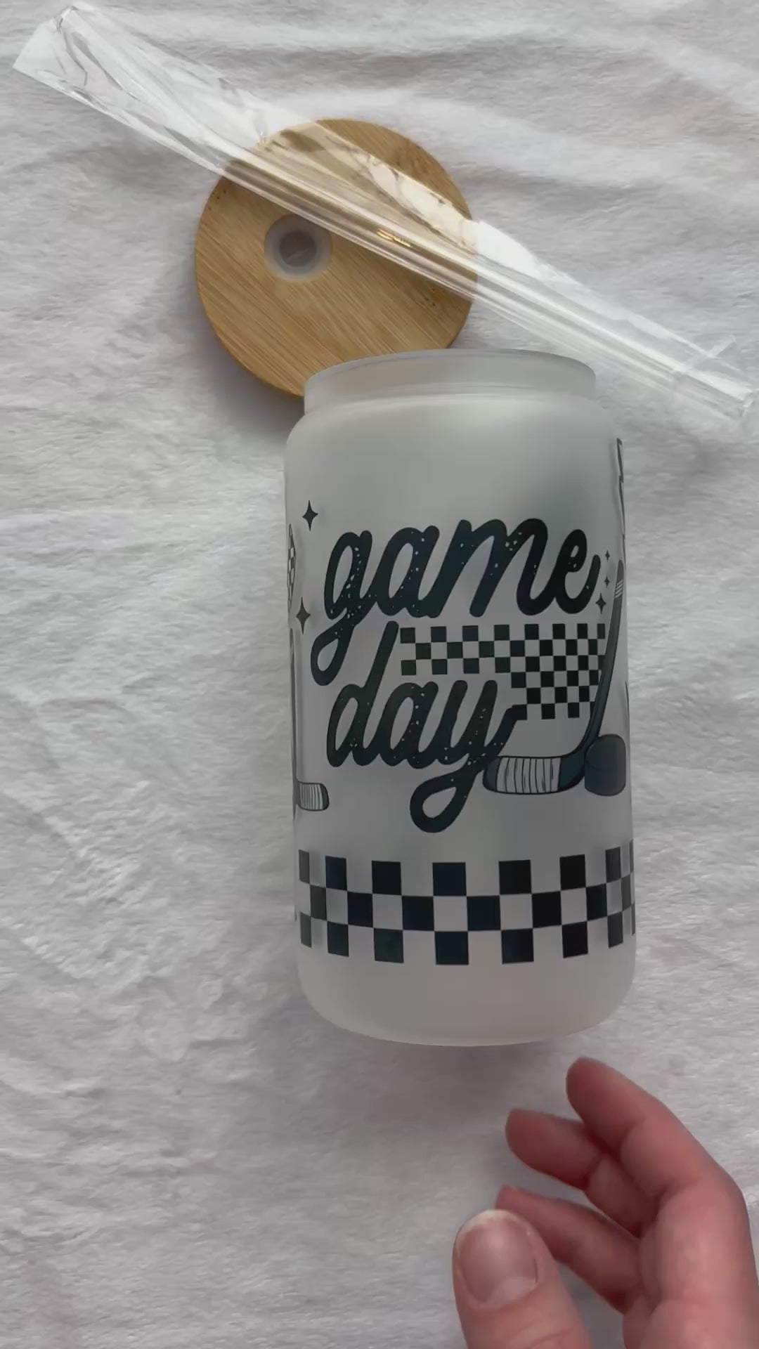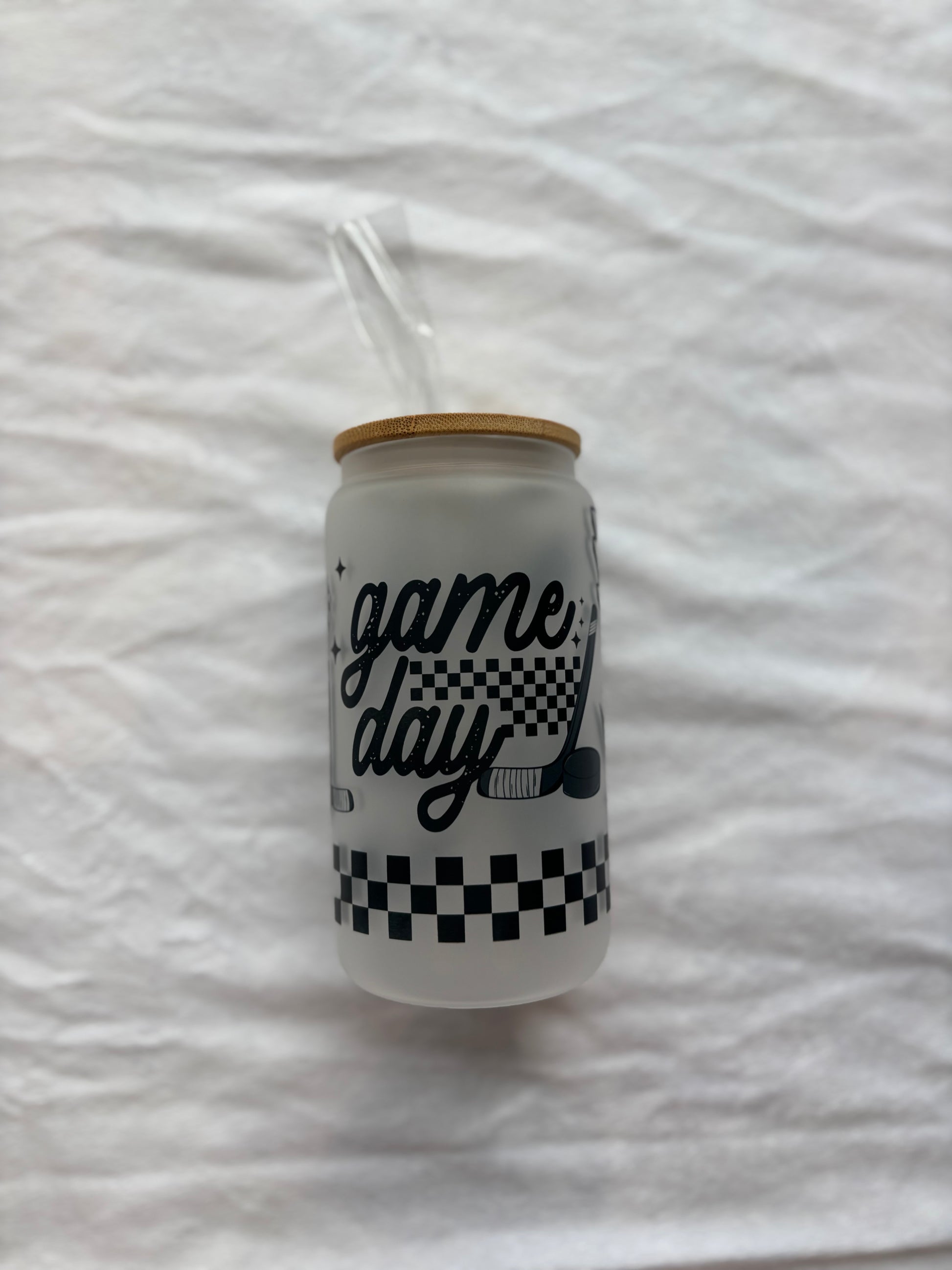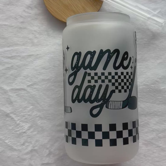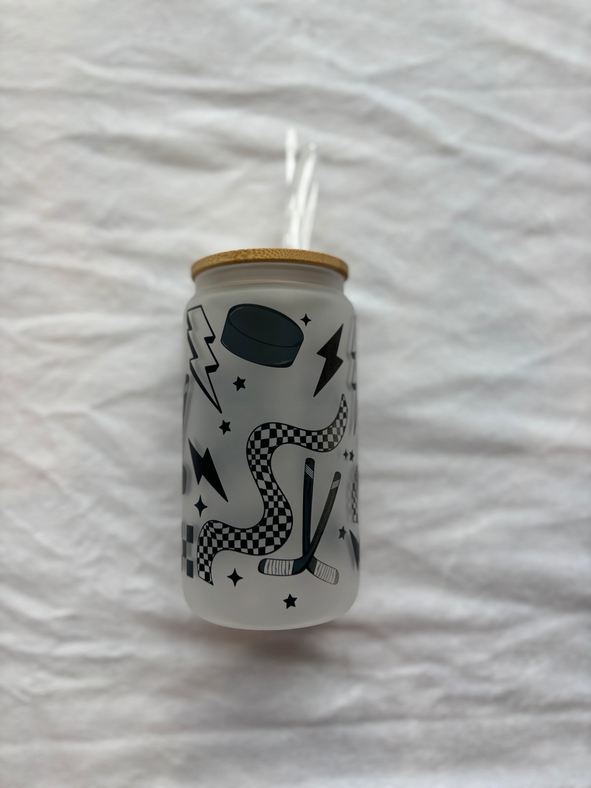With bold checkered details, a hockey stick + puck design, and frosted glass that looks as cool as it feels, this 16 oz can glass is made for hockey lovers. Whether you’re rink-side or on the couch, it’s the perfect way to bring the game day energy to your favorite drink. Comes with a bamboo lid and reusable straw.