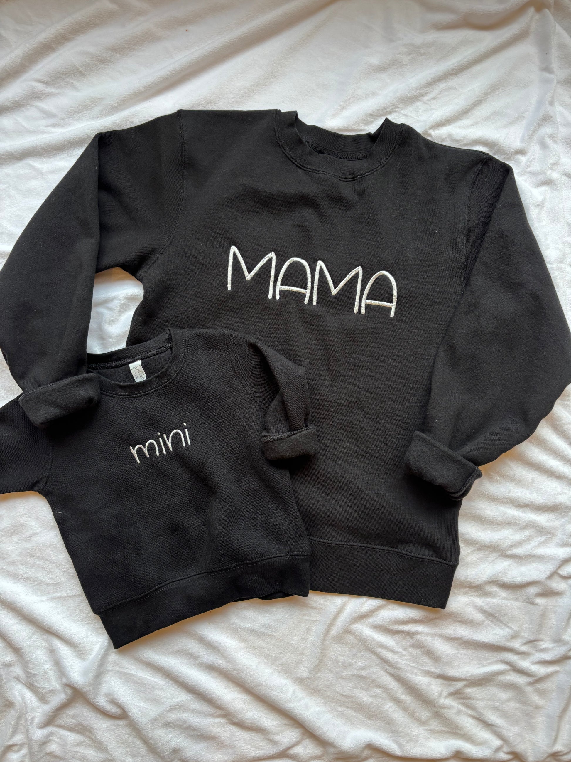 Celebrate the special bond with our 'Mama' Sweatshirt – a cozy and stylish way to show off your love for motherhood. This design pairs perfectly with our Mini Sweatshirt, creating an adorable matching set for both mama and little one. Whether you're relaxing at home or heading out for a day of errands, this sweatshirt offers both comfort and a chic, casual vibe. Its versatile style makes it easy to layer or wear on its own, making it the perfect piece to rock while matching with your mini-me!
