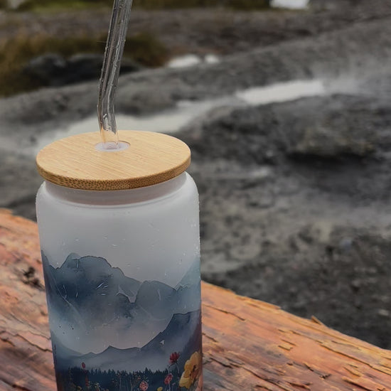 Mountain Wildflower Frosted Glass with Lid & Straw