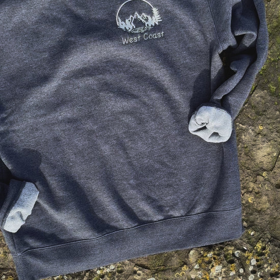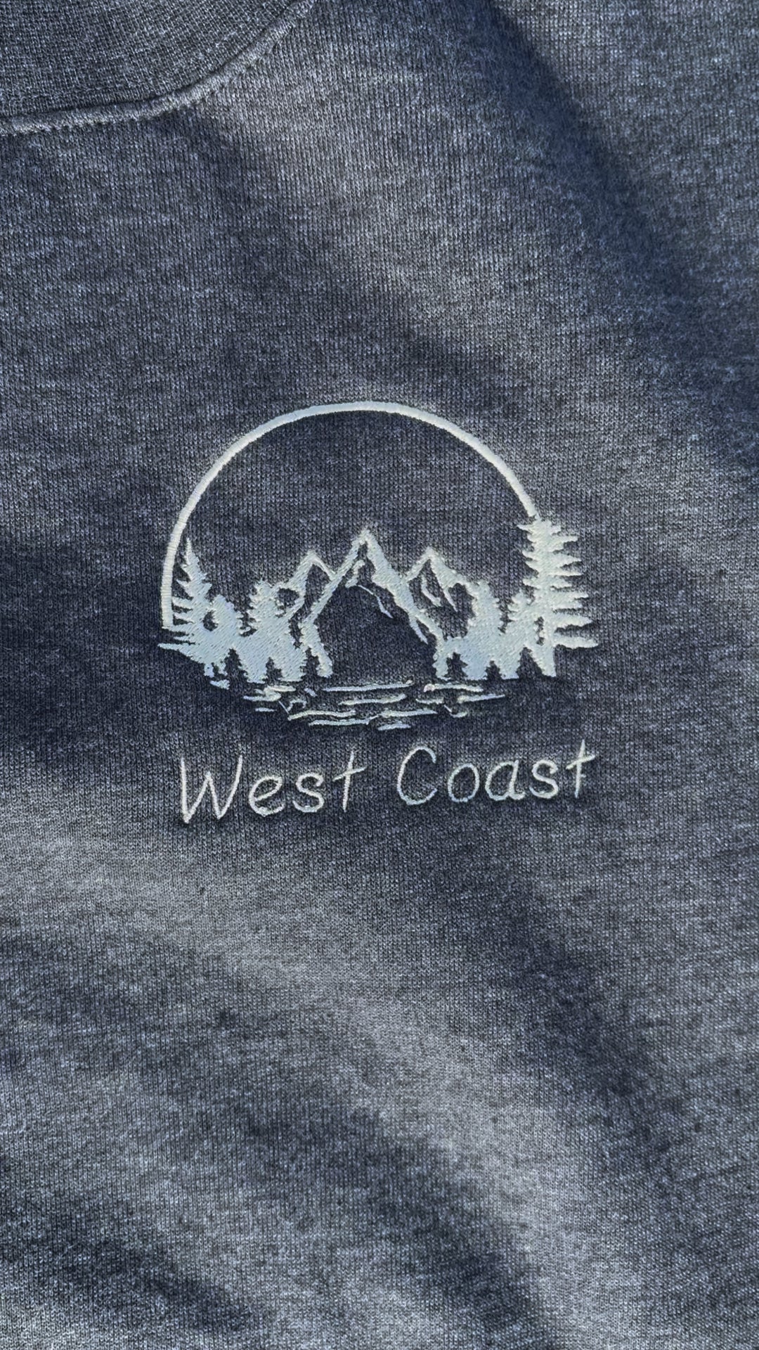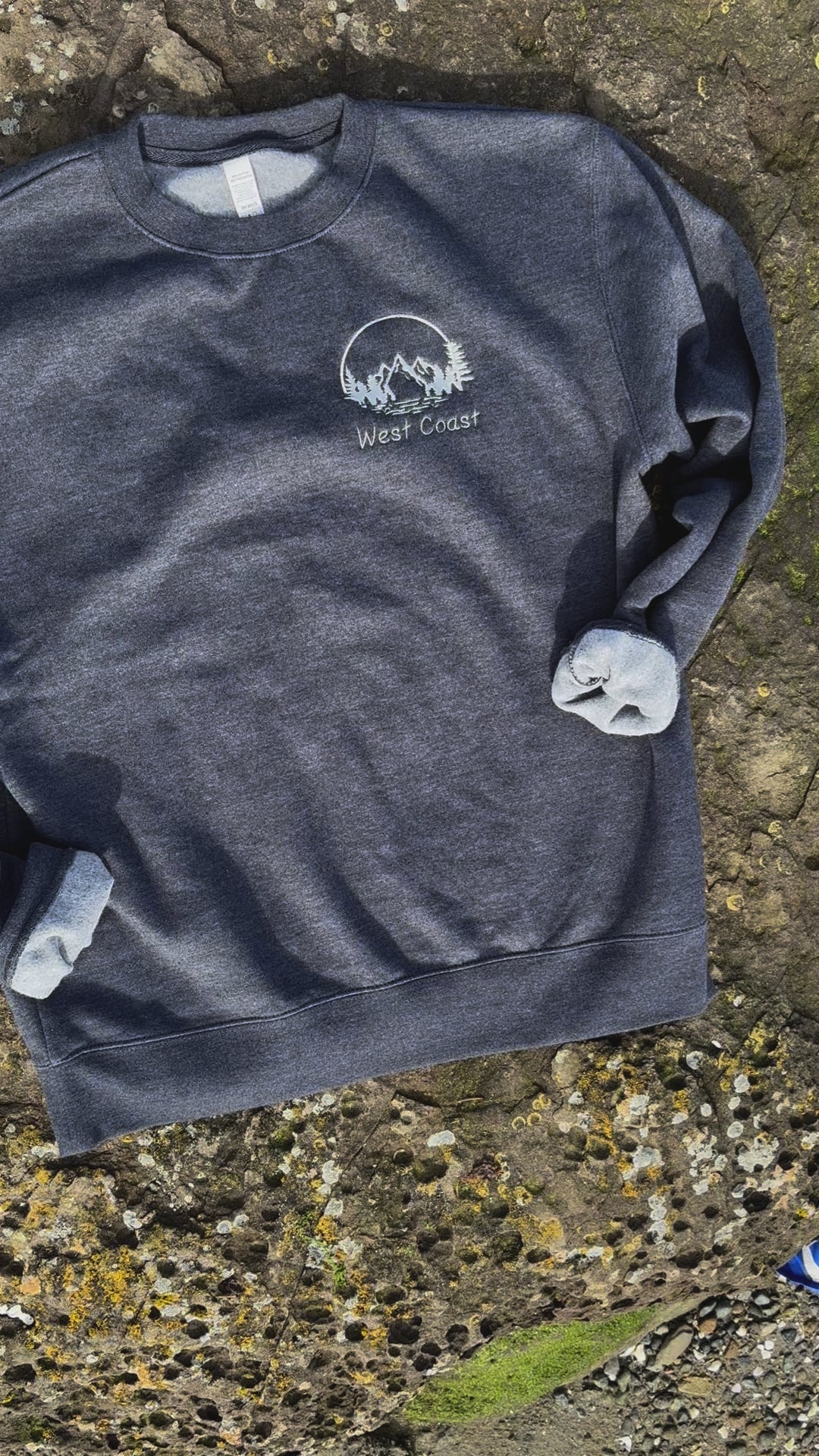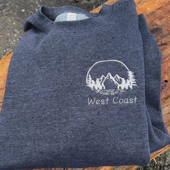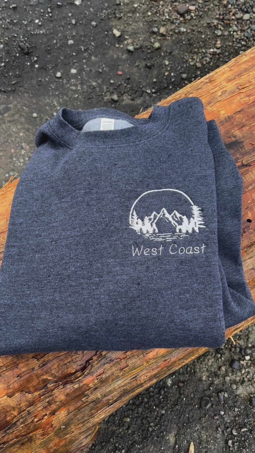 Embrace the spirit of the outdoors with our West Coast Embroidered Crewneck. Featuring a stunning design of trees and mountains with the words "West Coast" elegantly stitched at the bottom, this navy heather crewneck captures the rugged beauty of the coast. Whether you're hiking forest trails, exploring rocky shores, or just dreaming of your next adventure, this crewneck is the perfect companion.